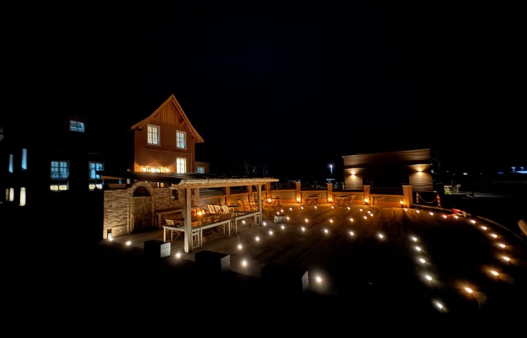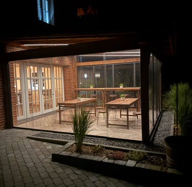 unter freiem Himmel, zwischen Holz, Glas, Licht und lebendiger Architektur.
