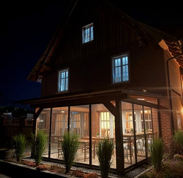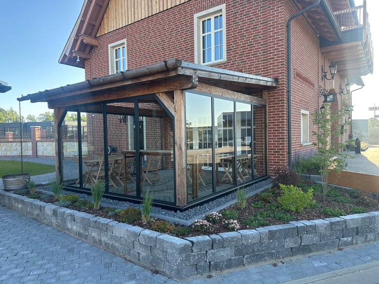 Der Vintage Wintergarten mit PV-Glas ist ein architektonisches Highlight und funktionales Energieelement zugleich.